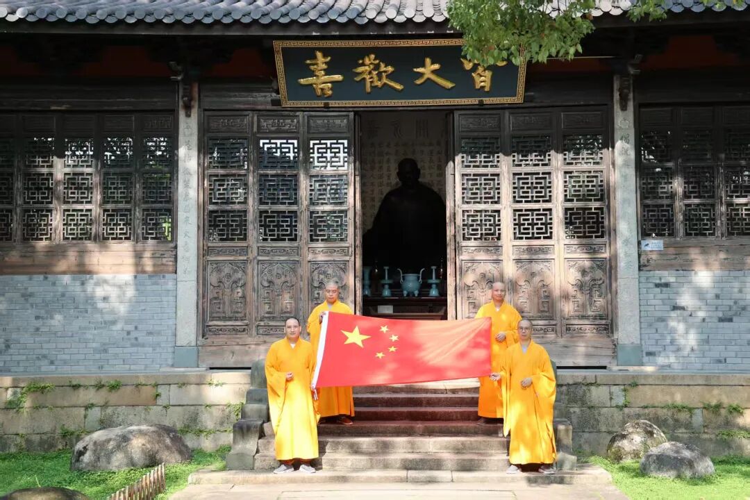10月1日国庆佳节,温州头陀寺在山门广场举行升国旗仪式,以此表达对祖国最深沉的热爱与祝福。