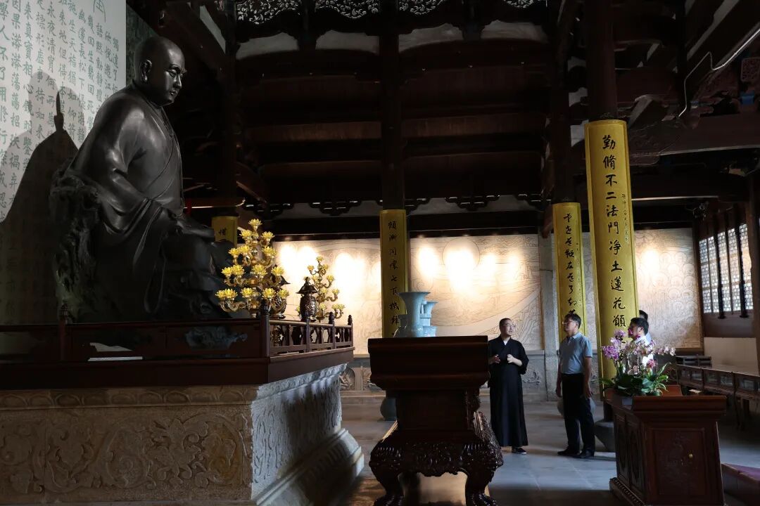 一行先后参观了祖殿、大雄宝殿、三昧书屋,最后众人在三昧书屋进行了座谈交流。座谈会上双方就佛教的爱国主义教育进程、文化传承等方面进行了深度的探讨,最后